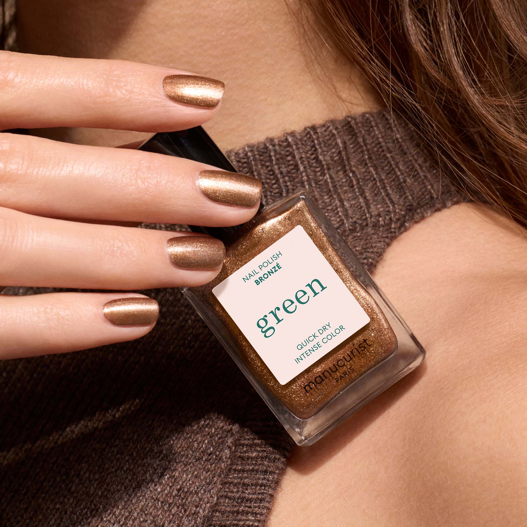 A brown glitter nail polish from the Green™ range.